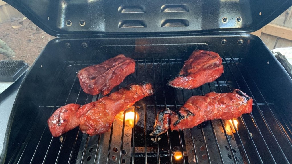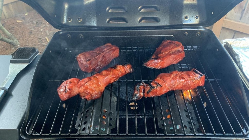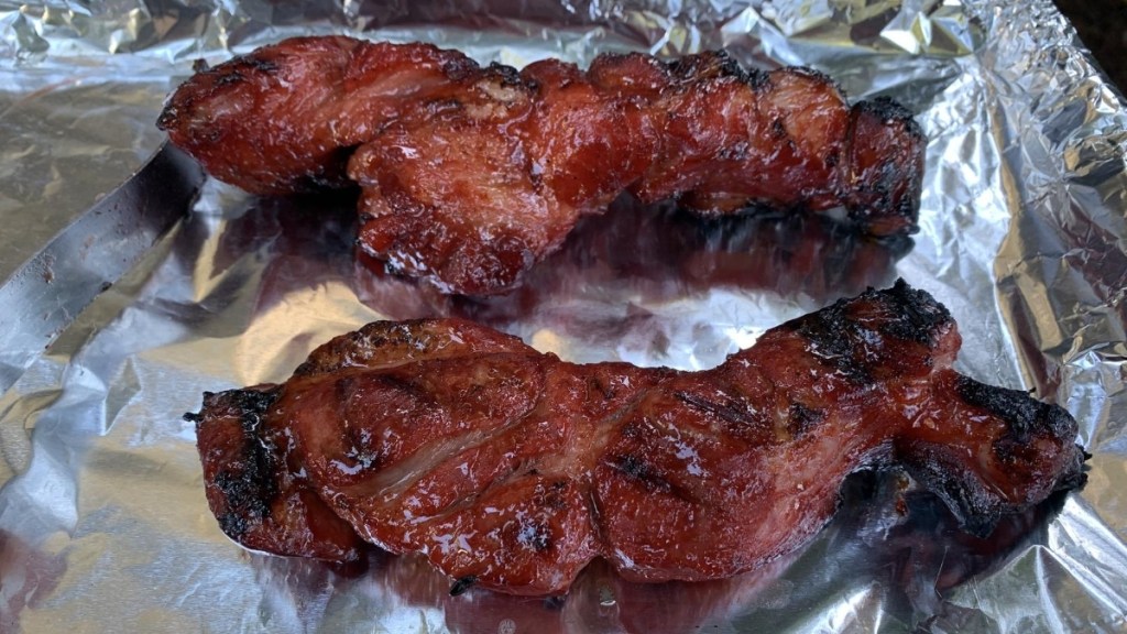 This recipe is straightforward and does not require a tremendous amount of effort. You make the sauce; you marinate the pork, you grill the ribs, you slice them, then you eat them. What we learned from this recipe: to start setting reminders in our phones when we pick the recipes, to look up where we can find ingredients ahead of time, double-check cooking times, and the most crucial lesson why eat out when you can cook at home wait…it’s so you don’t have to do the cleaning!