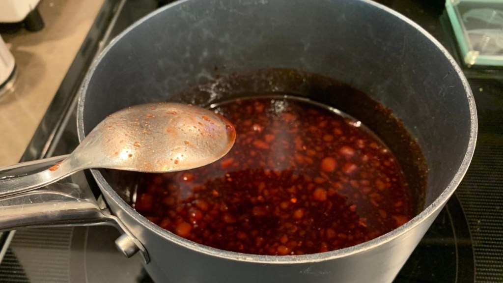 - Cook and stir until just combined and slightly warm, 2 to 3 minutes. We had to whisk it because the sugar and five-spice was clumping. We let it cook for about 5 to 6 minutes on medium heat. You know your stove, do what feels right.